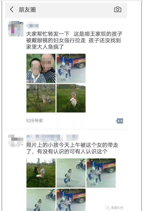 民警继续调取沿途监控,并联系村干部帮忙辨认视频中的女子。一时之间,当地不少人的微信圈里,开始传播王家坝有小学生被拐走的言论。13时许,在历经两个小时的寻找之后,终于传来好消息。