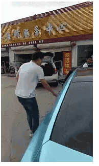 该男子便开车撞向停车场员工!