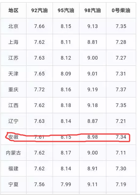 请看下方油价列表