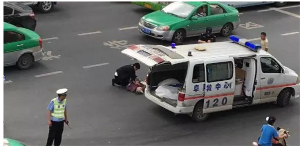 几分钟后,120赶至现场,医护人员立即对老太太进行抢救,可惜老人经抢救无效身亡。