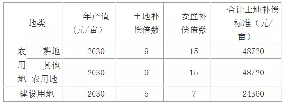 根据《安徽省人民政府关于调整安徽省征地补偿标准的通知》(皖政〔2015〕24号),初步按下表确定土地补偿费和安置补助费标准拟定《征收土地方案》上报审批。