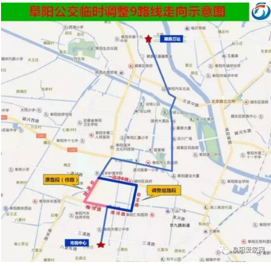 1、线路具体走向:颍泉万达原线至—清河路—阜南路—一道河路—阜王路—淮河路—西清路—市民中心。