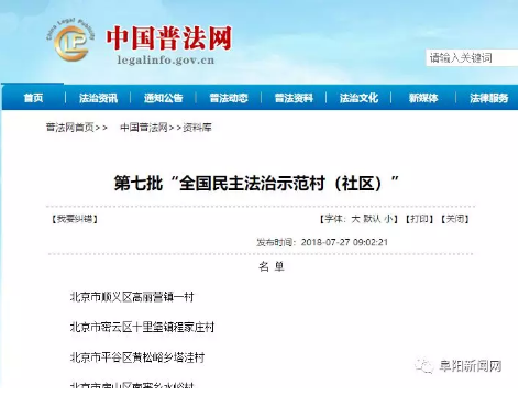 近日,全国第七批“全国民主法治示范村”名单出炉,全国803个村(社区)获选,安徽22个地方上榜,其中阜阳2个社区,获评示范村(社区)称号。安徽省合肥市巢湖市天河街道南苑社居委安徽省淮北市杜集区高岳街道