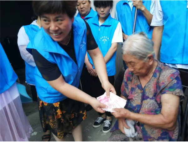 阜阳小雨伞爱心协会;部分志愿者(爱心人士)2018年7月15日到郜台乡、中岗镇、苗集镇看望独居老人,残疾人和贫困家庭,志愿者为他们送去生活物品和慰问金。公益献爱心,真情暖人间!倡导无私奉献新风尚,谱写